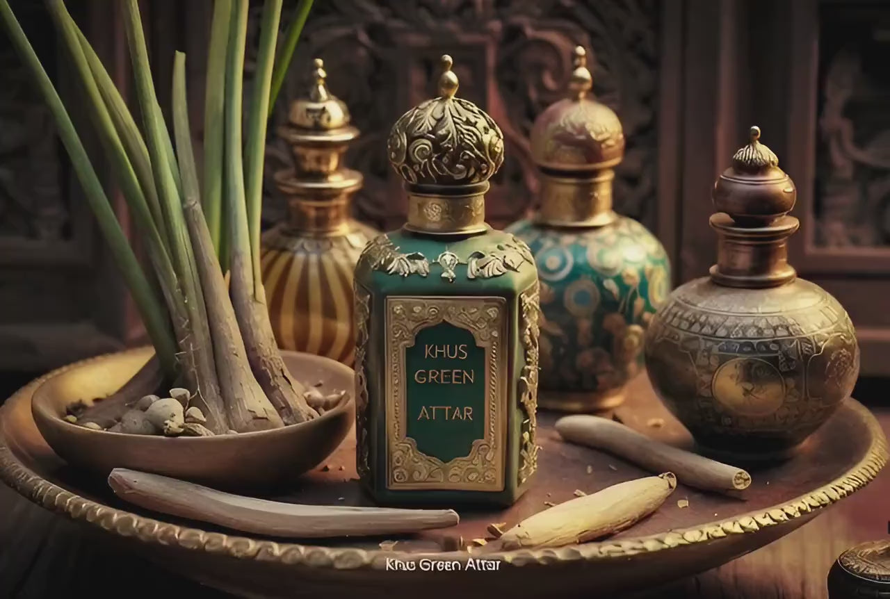 Khus Natural Perfume or simply Khus Attar is known in India as 'The Oil of Tranquillity' and is made from the root part of the Vetiver plant which is around two years old and is also blended with Indian White Sandalwood. The resulting product from steam distillation produces a fragrance that is best described as sweet, deep, woody, earthy, smoky, amber and balsam. This wonderful fragrance evokes both warmth and compassion on the wearer.