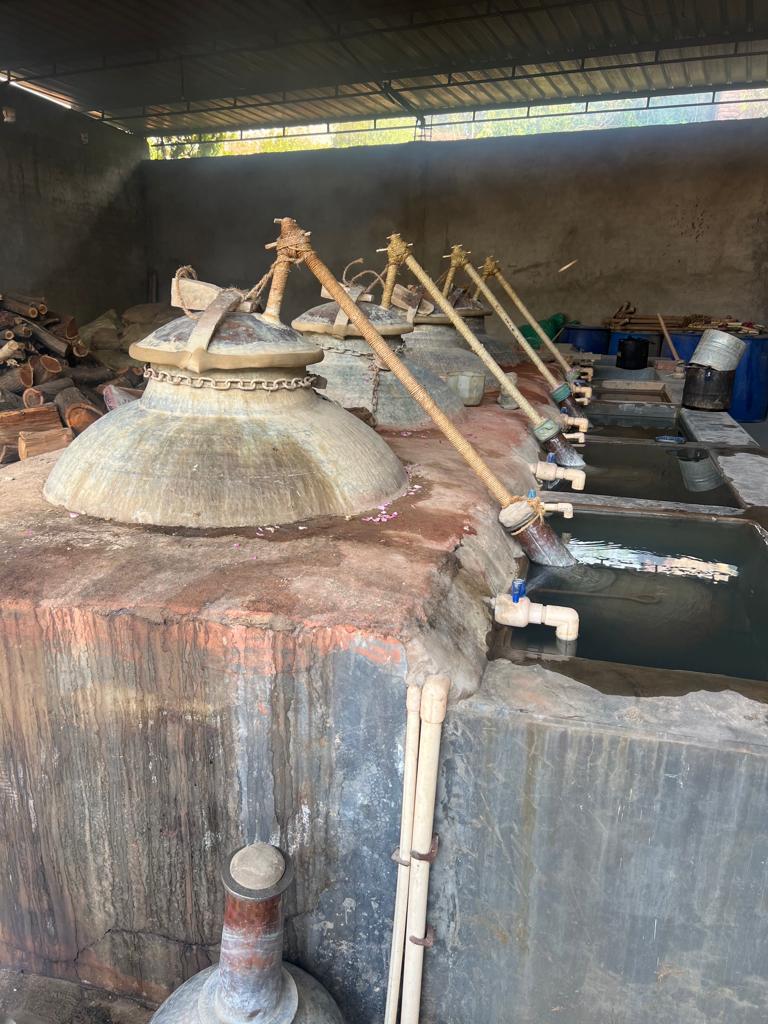 This pure rose essential oil (Ruh Gulab) is extracted using the traditional 'Deg & Bhapka' method, a hydro-distillation technique perfected by perfumers in Kannauj for generations. Fresh rose petals are gently heated in copper pots (degs) with water, and the fragrant steam is condensed into a receiver pot (bhapka).